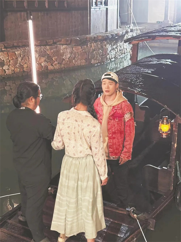 他抠起细节来毫不妥协:为了拍摄追赶戏,他从围栏上重重摔下,稍作休整后又起身重拍。市面上没有合适的道具,他和团队成员就亲手制作了“龙头灯”、哪吒服装、乾坤圈、弹弓等。凌晨4点,在气温仅3摄氏度的无锡水乡,身着单薄戏服的他一次次跃入刺骨的水中,忍着寒冷游回岸边后咬着牙说:“再来一遍!”