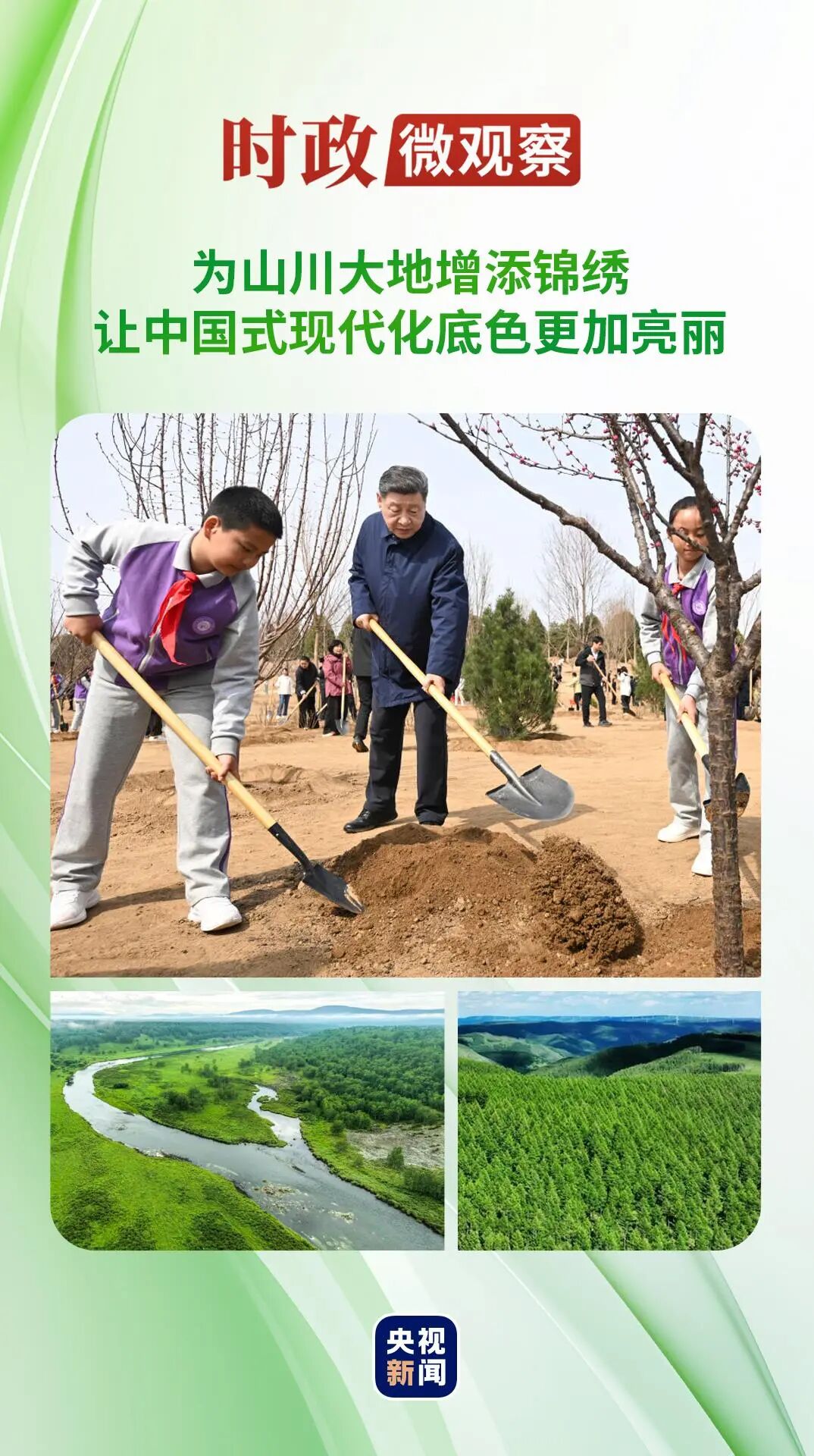 “今年是‘十五五’开局之年,也是全民义务植树运动开展45周年。”习近平总书记同在场的干部群众亲切交谈时强调,新形势下推进国土绿化,要更加注重提质、兴业、利民,实现种与管共抓、生态与产业共促、人与自然共生。