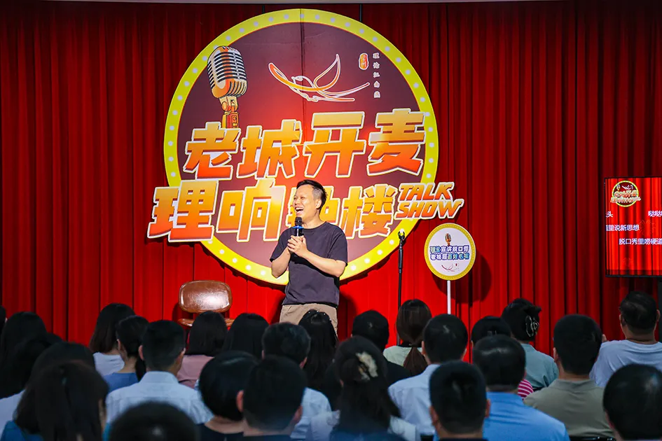 “老城开麦 理响钟楼”理论宣讲脱口秀。图片来源:江苏省精神文明建设办公室