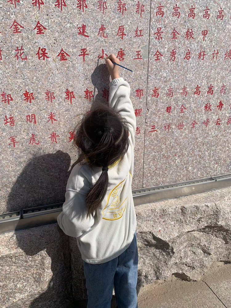 10月23日,在集宁战役纪念馆外,孩子通过描红的方式来纪念革命英雄。新华网 张倩 摄