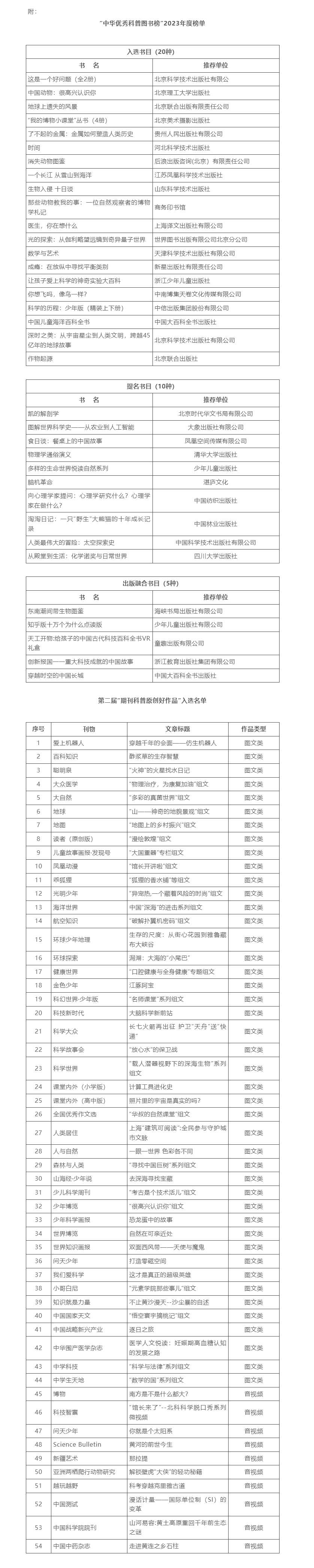 本次论坛还发布了“中华优秀科普图书榜”2023年度榜单,第二届“期刊科普原创好作品”入选名单,并向得到APP授予“科普原创好作品荐读平台”荣誉称号,为传媒业积极打造更多科普精品起到了示范引领和推动作用。