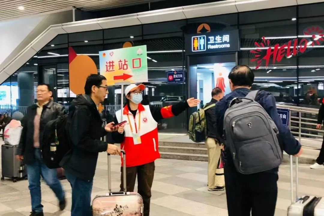 春运返程路上,广州白云站人潮涌动。志愿者们身着红马甲,为旅客指引进出站口、候车室等位置,用实际行动保障大家顺畅出行。