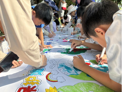 市民游客在参与文明环保绘画